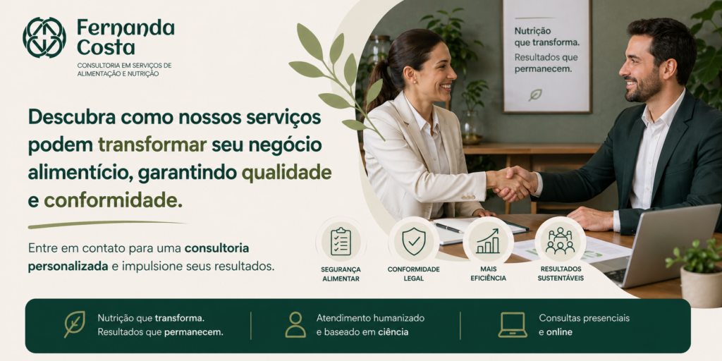 “Oferecemos consultorias nutricionais especializadas que elevam a eficiência e segurança alimentar de seu negócio.”